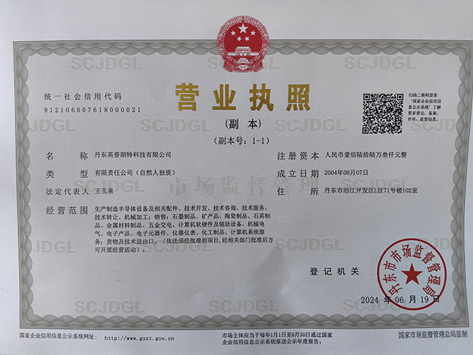 丹東英普朗特科技有限公司始建于1998年10月,2004年6月與澳大利亞合資重建,公司占地面積5300平方米,科研生產(chǎn)建筑面積4300平方米,是IC制造業(yè),半導體裝備的專業(yè)生產(chǎn)廠家,我公司產(chǎn)品并通過了省級產(chǎn)品鑒定和科技成果鑒定,被《世界經(jīng)理人周刊》評為《中國500******新產(chǎn)品》,暢銷海內(nèi)外。2010年,公司通過了 ISO 9001:2008國際質(zhì)量管理體系標準認證,并榮獲遼寧省高新技術企業(yè)和丹東市民營科技企業(yè)稱號。
